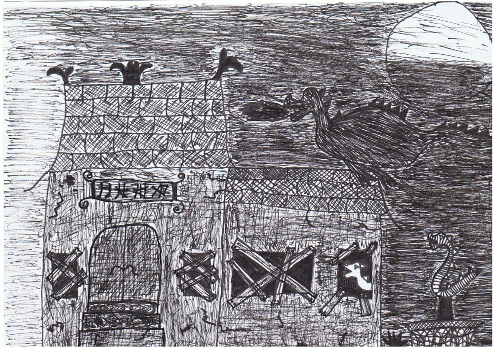 Lias Pietzsch 6a, Mit Schraffuren unheimliche Bildwelten gestalten Fineliner