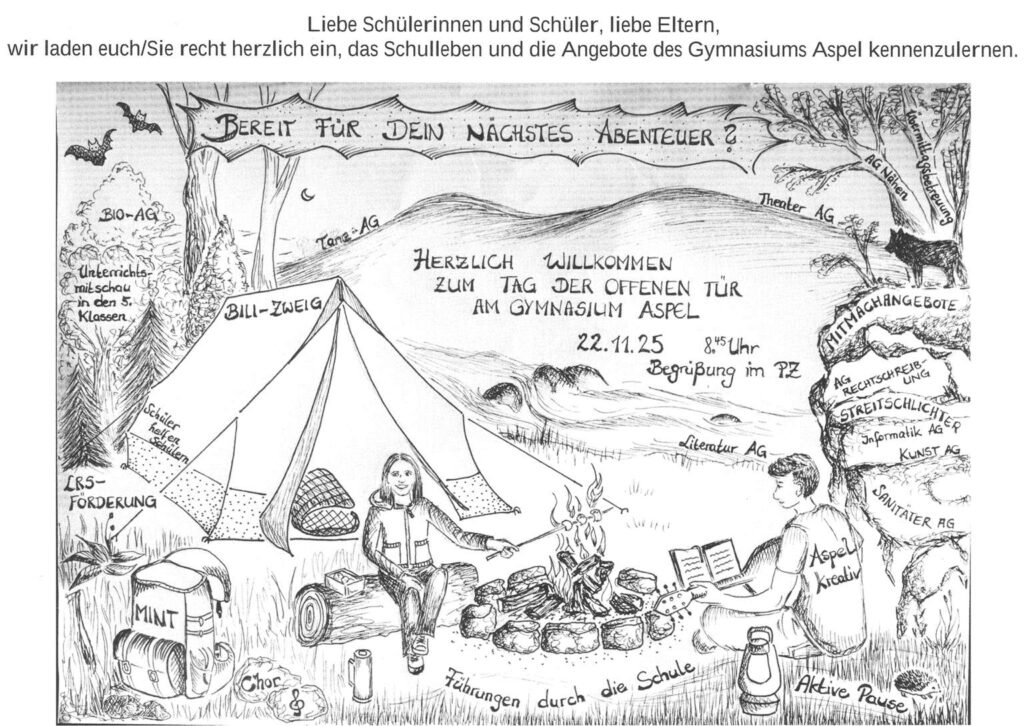 Wir, die Lehrerinnen und Lehrer des Gymnasiums Aspel, freuen uns schon jetzt, Sie und Ihr Kind am „Tag der offenen Tür“ an unserer Schule zu begrüßen und verbleiben bis dahin mit freundlichen Grüßen