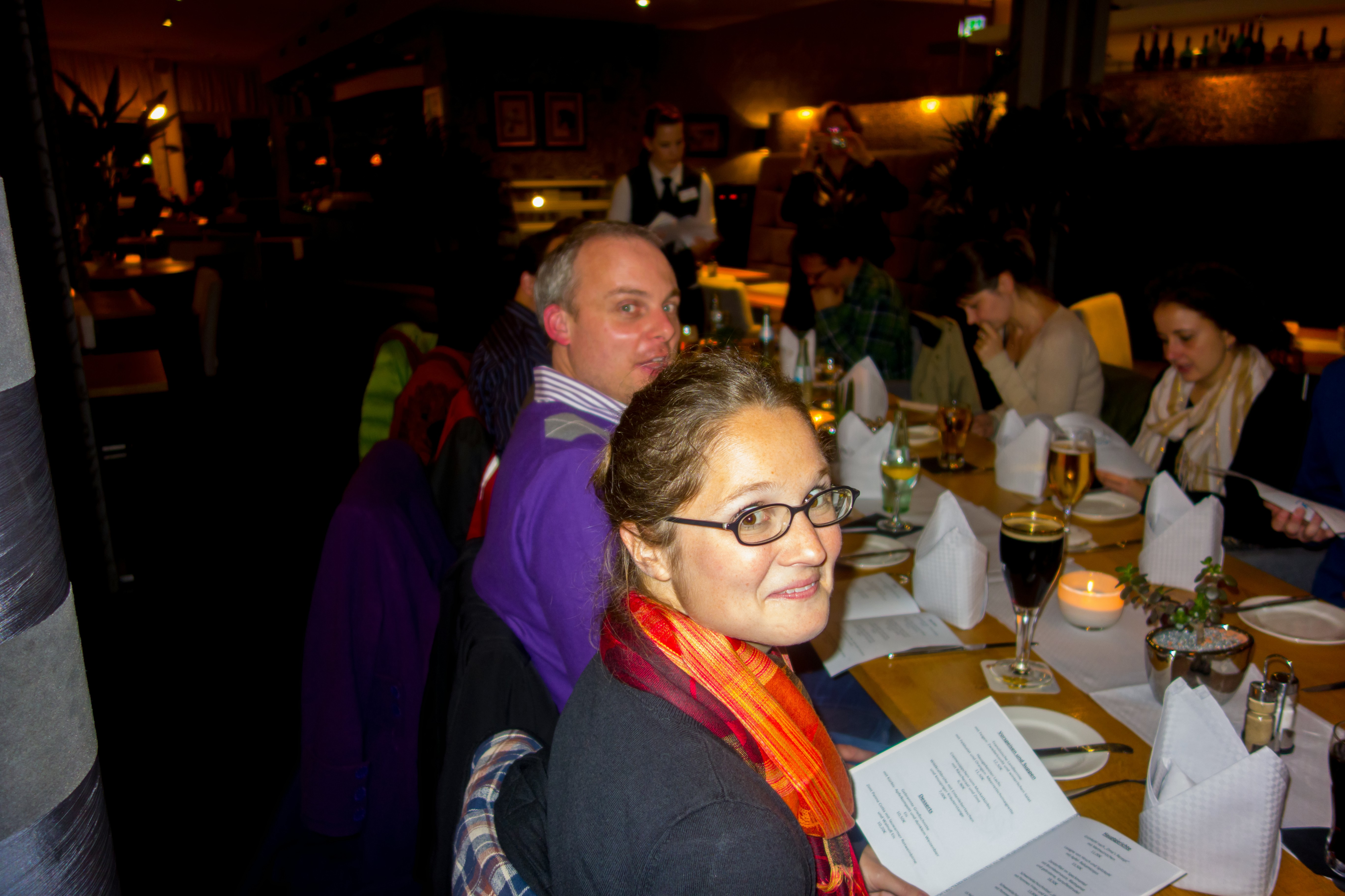 Dem Besuch der Universität Nimwegen am Nachmittag, bei dem wir an Präsentationen über englischsprachige Bachelor- und Masterstudiengänge und an einer Führung über den Campus teilgenommen haben, folgte das gemeinsame Abendessen in einem Restaurant in Nimwegen. Neben dem leckeren Essen stand hier wieder der Austausch zwischen verschiedenen Kulturen im Vordergrund. Zum ersten Mal haben wir uns intensiv mit dem Leben „der Anderen“ auseinandergesetzt. So wussten die Türken gar nicht, was sie im Restaurant bestellen sollten, weil sie die westeuropäischen Speisen nicht kannten und zum Beispiel auch kein Schweinefleisch essen dürfen. Nicht nur an diesem Abend bestand unsere besondere Aufgabe darin, die schwächeren Englischsprecher mit unserer Wörter- und Grammatikkenntnis zu unterstützen und ihnen zuzuhören, auch wenn es ihnen teilweise nach dem fünften Versuch immer noch nicht recht gelungen war, einen ordentlichen Satz hervorzubringen. Dies alles trug aber andererseits auch sehr zur Verständigung bei!