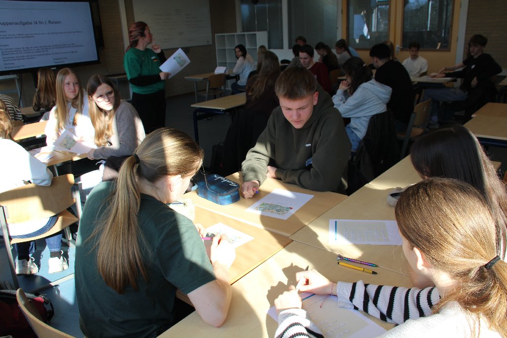 Deutsche Unterrichtssequenzen zu einem fiktiven Berlin-Besuch und Wissenswertes über die Region „Achterhoek“ schlossen sich an. Bei einer Foto-Challenge wurde die nähere Umgebung gemeinsam mit dem Austauschpartner erkundet.